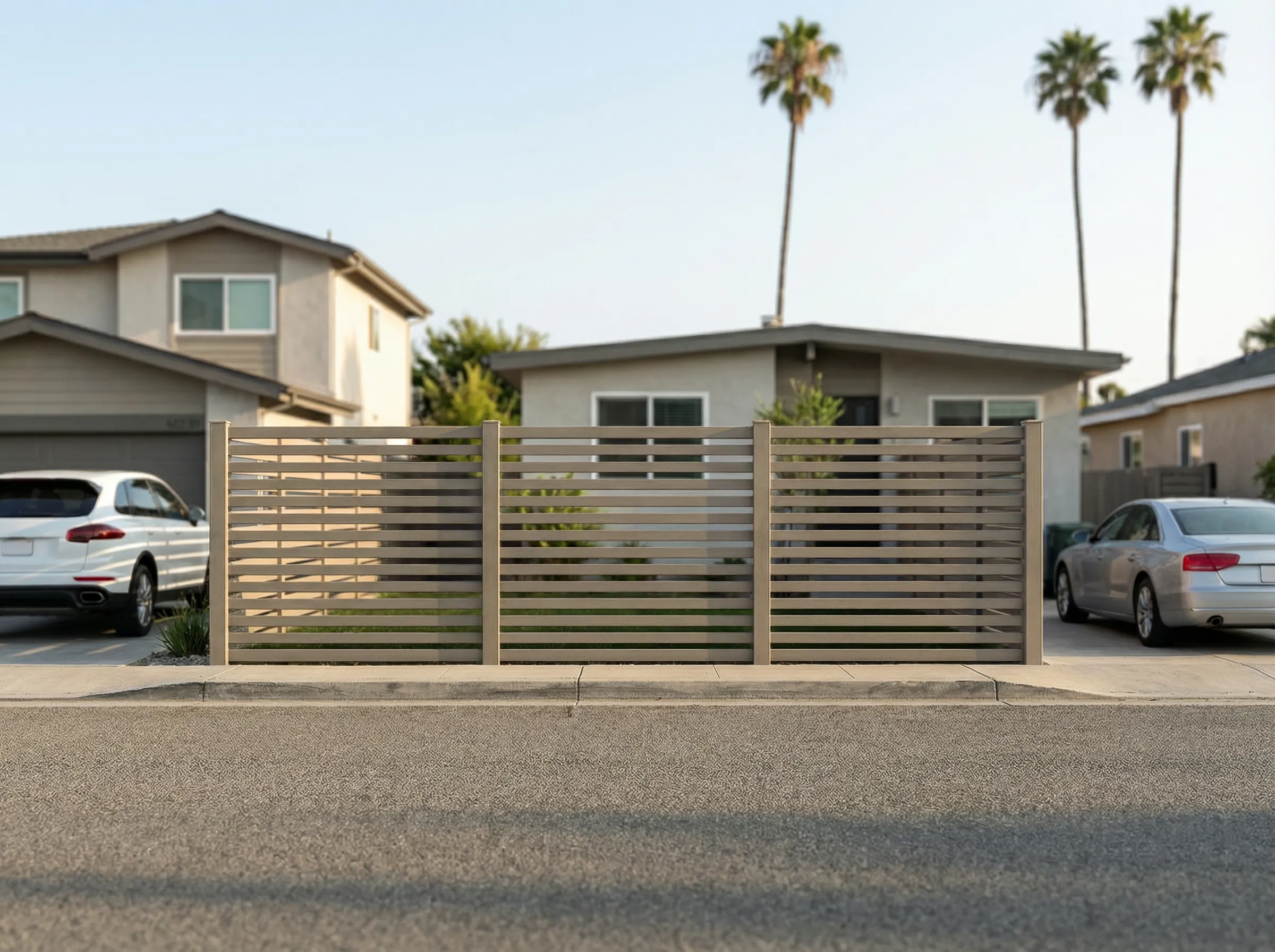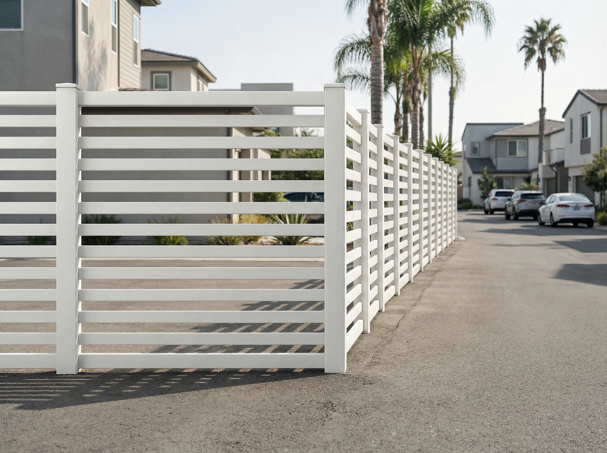 Modernize your property line instantly with our premium horizontal flat picket fencing. This highly contemporary style offers the absolute perfect balance for Los Angeles homeowners-keeping your children and pets safely contained while still allowing a refreshing breeze to flow through the precisely spaced horizontal slats. While horizontal wood fences are notorious for warping, sagging, and looking terrible after just a few hot summers, our commercial-grade vinyl construction is engineered to remain perfectly straight and structurally flawless for decades. You get that incredibly popular, high-end architectural aesthetic without the miserable, expensive reality of continuous wood maintenance. Simply wash it with a garden hose to keep it looking pristine. Elevate your home’s curb appeal with a permanent, weather-resistant boundary that is fully protected by our industry-leading lifetime warranty.